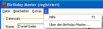 Dieses Feld enthält den Tag des Geburtstages. Gültige Eingaben sind 1 - 31. Geben sie