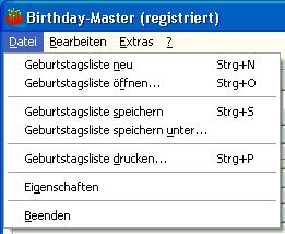 Geburtstagsliste von der Festplatte oder anderen Datenträgern eingelesen.